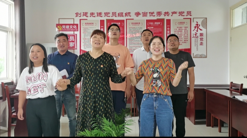 吟唱紅歌點燃家國情懷。“日落西山紅霞飛,戰(zhàn)士打靶把營歸把營歸,胸前的紅花映彩霞,愉快的歌聲滿天飛……”社區(qū)三樓會議室里,嘹亮的紅歌悅耳動聽,打靶歸來的喜悅之情綻放在一張張燦爛的笑容里?!拔逍羌t旗迎風(fēng)飄揚,勝利歌聲多么響亮;歌唱我們親愛的祖國,從今走向繁榮富強……”在《歌唱祖國》熟悉的旋律中,黨員、積極分子們以“創(chuàng)建先進黨員組織 爭當優(yōu)秀共產(chǎn)黨員”黨建文化墻為背景,面對鮮紅的黨旗放聲歌唱,用歌聲表達著對黨和國家的無限熱愛。