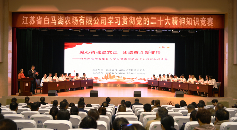 5月5日,白馬湖農(nóng)場公司“凝心鑄魂跟黨走 團(tuán)結(jié)奮斗新征程”學(xué)習(xí)貫徹黨的二十大精神知識(shí)競賽在職工禮堂火熱開賽。黨委書記、董事長韓正光,黨委副書記、總經(jīng)理韓樹明,副總經(jīng)理衡愛軍,紀(jì)委負(fù)責(zé)人時(shí)奎敬,第二片區(qū)財(cái)務(wù)總監(jiān)奚興林出席競賽。來自機(jī)關(guān)和各單位的21支代表隊(duì)共計(jì)63人參加競賽。