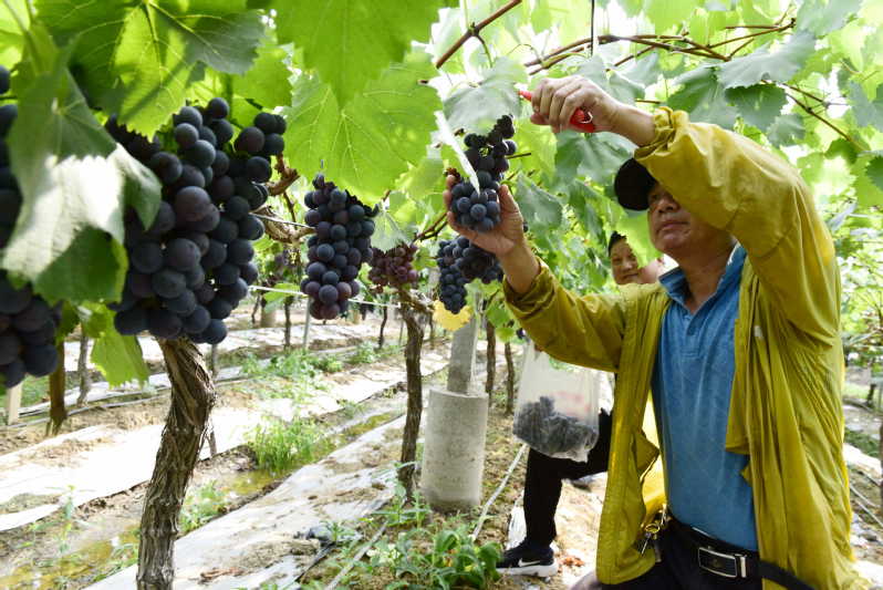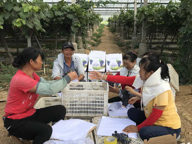 據(jù)了解,園內(nèi)種植品種“夏黑”和“陽光玫瑰”等葡萄品種,畝產(chǎn)量可達(dá)4000斤上下。特別是其統(tǒng)一施用農(nóng)家肥、無公害防蟲防病、反光膜覆蓋、科學(xué)滴灌、疏果等措施,輔助于智能化的通風(fēng)調(diào)溫、噴淋調(diào)水和調(diào)節(jié)光照設(shè)施的開展,合理調(diào)節(jié)土壤水分,降低田間溫、濕度,也減輕各類病蟲害的侵襲,讓葡萄按規(guī)定設(shè)計的要求進行掛果,確保種出安全、優(yōu)質(zhì)的葡萄提供給消費者。