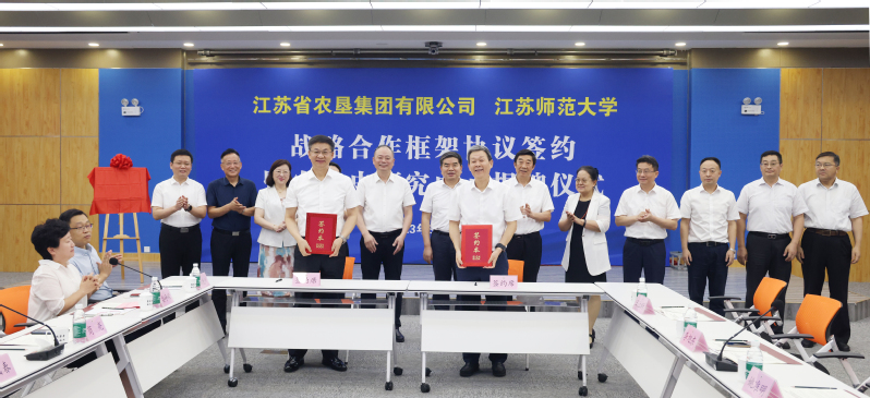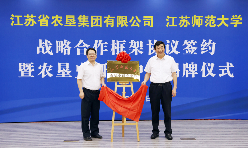 8月10日上午,集團公司與江蘇師范大學(xué)戰(zhàn)略合作框架協(xié)議簽約暨農(nóng)墾史研究中心揭牌儀式在徐州舉行。集團公司黨委書記、董事長魏紅軍,江蘇師范大學(xué)黨委書記方忠出席并致辭。集團公司黨委副書記、總經(jīng)理胡兆輝與江蘇師范大學(xué)黨委副書記、校長周汝光共同為江蘇師范大學(xué)農(nóng)墾史研究中心揭牌。集團公司黨委副書記姚準明與江蘇師范大學(xué)黨委常委、副校長蔡國春共同簽署《戰(zhàn)略合作框架協(xié)議》。江蘇師范大學(xué)農(nóng)墾史研究中心主任岑紅發(fā)言。集團公司黨委委員、總會計師劉克英,黨委委員、紀委書記李旭東,副總經(jīng)理劉耀武,黨委委員、副總經(jīng)理王立新,黨委委員、工會主席楊義林,江蘇師范大學(xué)黨委常委、黨委宣傳部部長孟召學(xué),黨委常委、黨委統(tǒng)戰(zhàn)部部長、黨委辦公室主任商亮出席。
