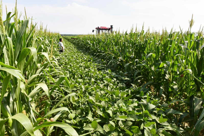 玉米雄穗剛露頭尚未開(kāi)花散粉時(shí)進(jìn)行去頂(去掉玉米雄穗),既能讓玉米提前成熟3-5天,又可以使玉米籽粒灌漿相對(duì)集中、減少養(yǎng)分消耗,可以降低株高防風(fēng)防倒,改善玉米基部及行間大豆光照積累,減少穗部易患玉米螟、蚜蟲(chóng)等害蟲(chóng)的危害,從而達(dá)到增產(chǎn)的目的。