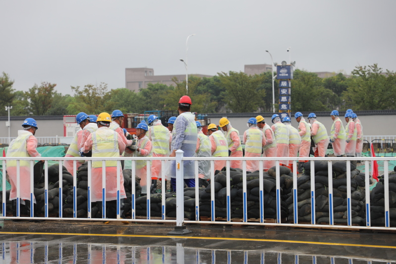 為進一步樹牢安全發(fā)展理念、壓實安全生產(chǎn)責任、防范化解重大風險、提升干部職工應(yīng)急處置能力,8月29日,江心沙攜手中鐵十四局海太長江隧道工程項目部開展防臺防汛綜合應(yīng)急演練。圖為筑堤防洪、醫(yī)療救助、緊急撤離等演練場景。