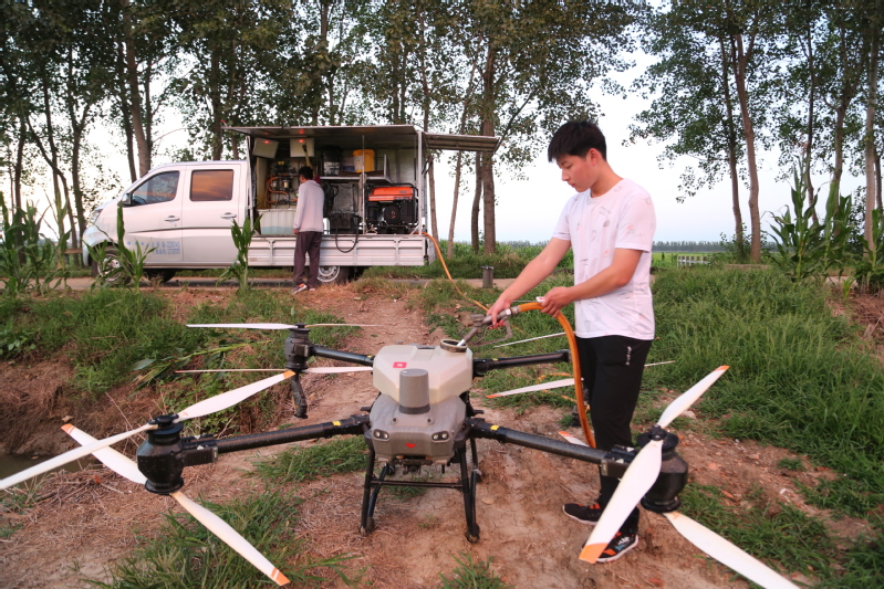 眼下正是水稻產(chǎn)量形成的關(guān)鍵時(shí)期,也是病蟲害高發(fā)時(shí)期。連日來,崗埠分公司組織農(nóng)業(yè)科、生產(chǎn)區(qū)農(nóng)技人員和大隊(duì)管理員,著眼紋枯病、稻曲病、稻縱卷葉螟、稻飛虱等高發(fā)病蟲害,深入田間展開排查統(tǒng)計(jì),分類施策,科學(xué)開展肥水管理和綠色防控,抓好4.5萬畝水稻的穗期管理工作?!盁o人機(jī)夜間對水稻進(jìn)行病蟲害綜合防治作業(yè),避開白天高溫作業(yè)風(fēng)險(xiǎn),大大提升作業(yè)效率,一臺無人機(jī)每小時(shí)可噴灑150畝,有力加速防治進(jìn)程?!睄彶悍止巨r(nóng)業(yè)中心負(fù)責(zé)人表示,無人機(jī)飛防不僅作業(yè)效率快,防治效果好,減少農(nóng)藥使用量,降低農(nóng)業(yè)生產(chǎn)成本,且能大大降低勞動(dòng)強(qiáng)度,一舉多得。當(dāng)前正是穗期水稻病蟲害綜合防治關(guān)鍵節(jié)點(diǎn),分公司共組織無人機(jī)40余臺,采取夜間操作,確保在規(guī)定防治時(shí)間內(nèi)完成防治任務(wù),為秋糧豐收打好基礎(chǔ)。