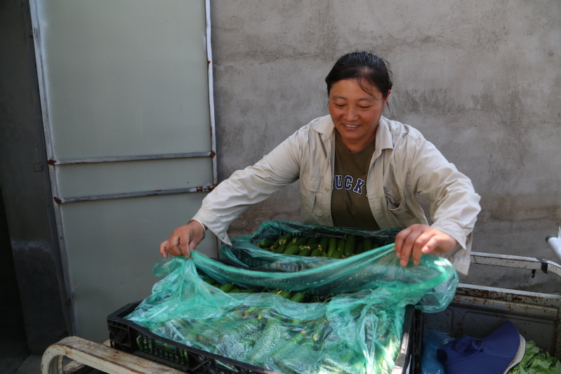 “劉大姐,像這樣的次果別放在筐子里,這是要打包送到保真超市的,咱得確保果型質(zhì)量呀!”9月4日上午,在崗埠富民農(nóng)業(yè)科技園32號(hào)大棚門前,一筐筐剛摘下的水果黃瓜翠綠欲滴,工作人員崔士平正在仔細(xì)整理挑選水果黃瓜,準(zhǔn)備裝車送往連云港市區(qū)的保真超市。