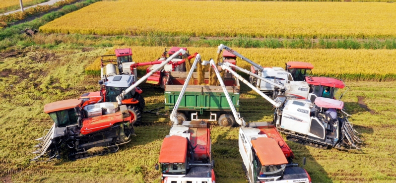 10月25日,蘇墾農(nóng)發(fā)江心沙分公司搶抓晴好天氣,組織收割機集中開展大規(guī)模水稻收割作業(yè),切實將“豐收在望”轉(zhuǎn)化為“豐收到手”,彰顯農(nóng)業(yè)“國家隊”擔(dān)當(dāng)。收割現(xiàn)場,收割機、運糧車來來往往,一片繁忙景象。