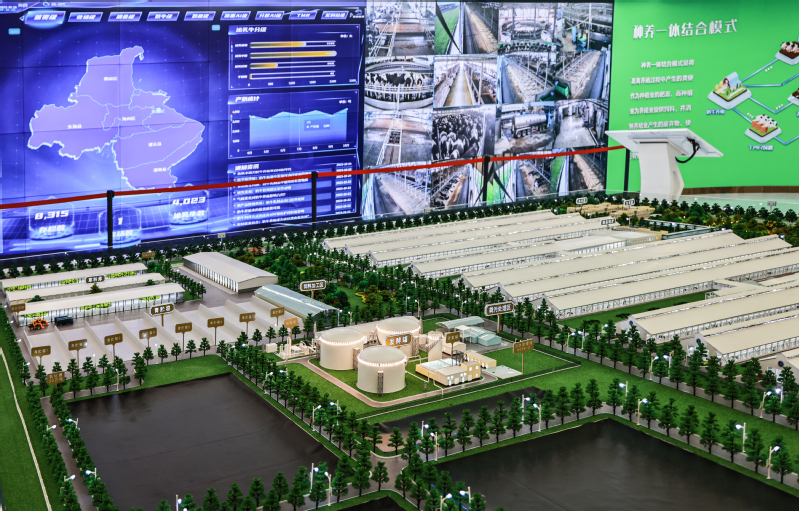 生態(tài)化發(fā)展加速轉(zhuǎn)型。牧場智慧生態(tài)系統(tǒng)中,污水循環(huán)管理設(shè)備包含牧場污水管路3D圖與污水監(jiān)測點位信息,做到實時監(jiān)測牧場污水指標,并將數(shù)據(jù)同步上傳至環(huán)保局,確保牧場水質(zhì)監(jiān)管到位。沼氣發(fā)電系統(tǒng)將標準化工藝處理糞污產(chǎn)生的沼氣,用于發(fā)電后接入國家電網(wǎng),沼液利用后的沼渣作為奶牛牛床墊料的生產(chǎn)原料,不僅成本低,更大大降低了養(yǎng)殖風(fēng)險。同時在場區(qū)配備廢氣檢測設(shè)備監(jiān)測養(yǎng)殖氣體環(huán)境,配備消防監(jiān)控設(shè)備監(jiān)測飼草區(qū)與沼氣發(fā)電區(qū)域煙火狀況。智能生態(tài)系統(tǒng)采取糞污固體發(fā)酵、沼氣烘干回床、沼液還田方式,實現(xiàn)“變廢為寶”。對牧場糞污發(fā)酵后的液位進行采集,經(jīng)過無害化處理后的沼液通過預(yù)設(shè)專用管道,在卷盤式噴灌機的運轉(zhuǎn)下自動噴灑在專屬消納用地的田間作物上,形成種養(yǎng)一體循環(huán),有效提高了糞污綜合利用水平。