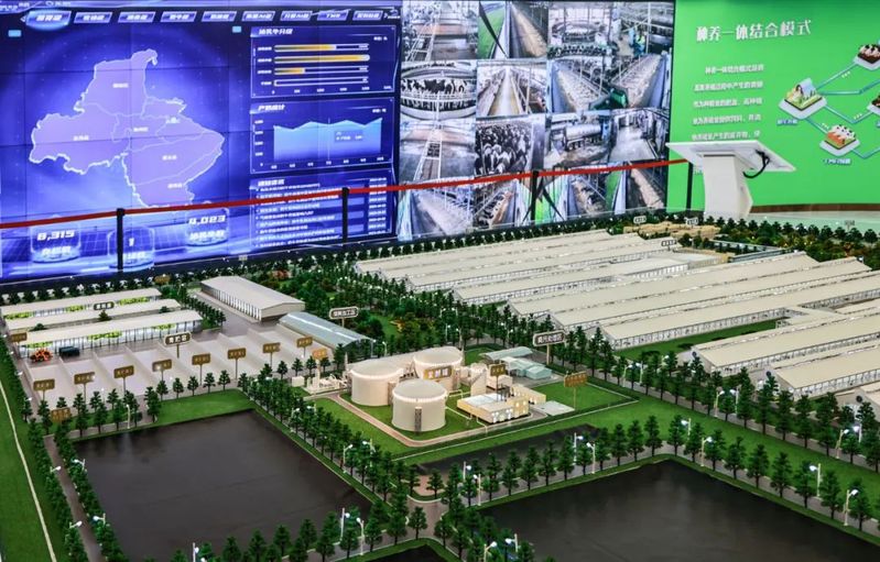 生態(tài)化發(fā)展加速轉(zhuǎn)型。牧場智慧生態(tài)系統(tǒng)的污水循環(huán)管理設(shè)備包含牧場污水管路3D圖與污水監(jiān)測點(diǎn)位信息,實(shí)時(shí)監(jiān)測牧場污水指標(biāo),并將數(shù)據(jù)同步上傳至環(huán)保部門,確保牧場水質(zhì)監(jiān)管到位。沼氣發(fā)電系統(tǒng)將標(biāo)準(zhǔn)化工藝處理糞污產(chǎn)生的沼氣用于發(fā)電,沼液利用后的沼渣作為牛床墊料的生產(chǎn)原料,不僅成本低,還有效降低了養(yǎng)殖風(fēng)險(xiǎn)。同時(shí)在場區(qū)配備廢氣檢測設(shè)備監(jiān)測養(yǎng)殖氣體環(huán)境,配備消防監(jiān)控設(shè)備監(jiān)測飼草區(qū)與沼氣發(fā)電區(qū)域煙火狀況。智能生態(tài)系統(tǒng)采取糞污固體發(fā)酵、沼氣烘干回床、沼液還田方式,實(shí)現(xiàn)“變廢為寶”。對牧場糞污發(fā)酵后的液位進(jìn)行采集,經(jīng)過無害化處理后的沼液通過預(yù)設(shè)專用管道,在卷盤式噴灌機(jī)的運(yùn)轉(zhuǎn)下自動噴灑在專屬消納用地的田間作物上,形成種養(yǎng)一體循環(huán),有效提高了糞污綜合利用水平。