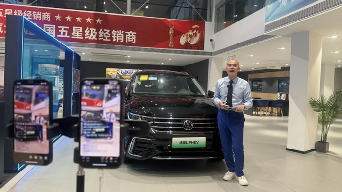 “不是任何人都適合面對(duì)鏡頭,所有銷售顧問(wèn)必須輪播上崗,通過(guò)全員直播選拔優(yōu)秀主播人員和銷售支持。”市場(chǎng)專題會(huì)議上,蘇舜對(duì)直播營(yíng)銷的人員架構(gòu)和主播的選拔提出了明確要求。蘇舜年輕人居多,他們不僅充滿活力,而且對(duì)新鮮事物感興趣,公司從中挑選出形象好、口才出眾、專業(yè)能力強(qiáng)等方面均較為優(yōu)異的員工,經(jīng)過(guò)培訓(xùn)后組成主播團(tuán),輪流在網(wǎng)絡(luò)上展示自我,試播通過(guò)后再擇優(yōu)確定最終人選,讓員工既下得了車間,還上得了直播間。目前,公司11家4S店直播營(yíng)銷團(tuán)隊(duì)均為“1+1+3”的架構(gòu)(即:1名專職主播、1名兼職主播和邀約專員、銷售顧問(wèn)、服務(wù)顧問(wèn)3名銷售支持人員),形成類似DCC的直播小組協(xié)同作戰(zhàn),主播人員中既有企業(yè)一線員工,也有基層管理崗位人員。