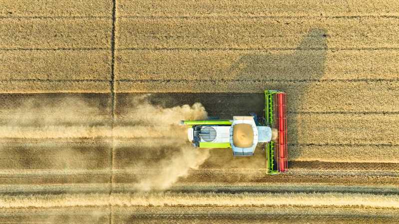 6月4日,江蘇省鹽城市射陽縣,江蘇農(nóng)墾新洋農(nóng)場(chǎng)組織大型聯(lián)合收割機(jī)搶收小麥,確保顆粒歸倉。
