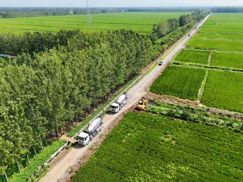 9月9日,江蘇省連云港市海州區(qū)的江蘇農(nóng)墾崗埠農(nóng)場高標準農(nóng)田建設現(xiàn)場,施工單位搶抓晴好天氣,加緊推進高標準農(nóng)田配套水泥路建設,切實推動農(nóng)田道路提檔升級,促進農(nóng)業(yè)發(fā)展。作者:徐衛(wèi) 攝
