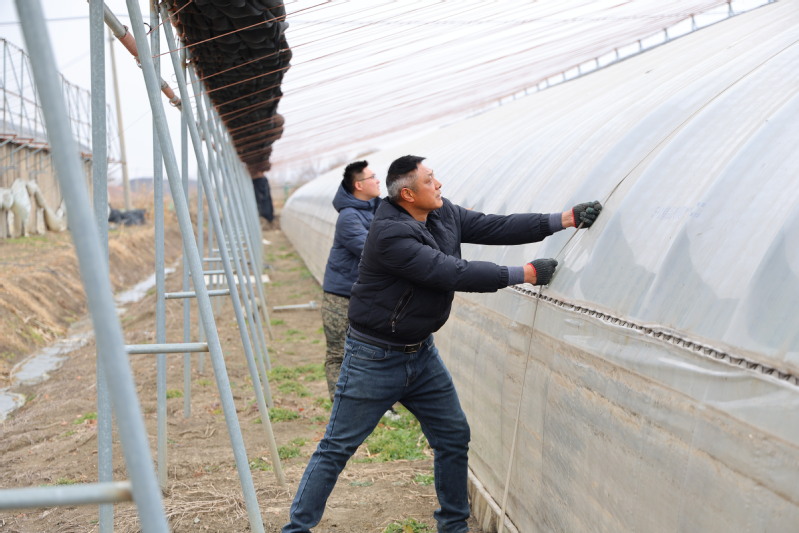 三河農場將防護重點聚焦草莓產業(yè),以“早準備、嚴落實、保安全”為原則,組織工作人員放棄休息時間,于1月17日至18日全面開展草莓大棚防寒加固工作。工作人員對大棚鋼架連接點、棚膜松緊度進行拉網式排查,逐一擰緊松動卡扣,仔細檢查卷簾設備與照明設施,確保大棚能夠承受風雪壓力,全力守護草莓生產安全。