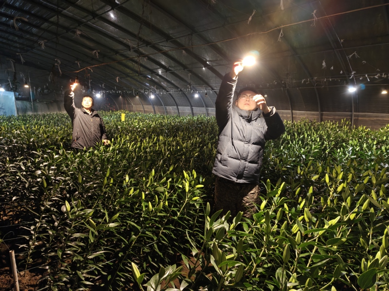 崗埠農場則聚焦高效農業(yè)示范園作物分類管護,組織人員對所有大棚骨架、保溫棉被進行全面檢修加固,為1.5萬株百合花苗噴施抗逆性葉面肥,對西紅柿苗開展精準打杈、澆水管理,提前準備40余臺套熱風機、水源熱泵等加溫設備,其中31號大棚通過水源熱泵將夜間溫度穩(wěn)定在16.5℃,有效保障作物生長關鍵期需求。