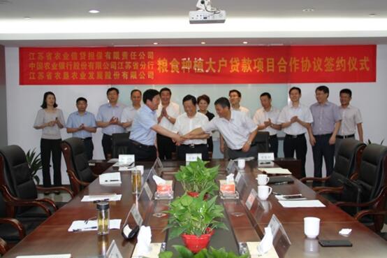 6月21日下午,蘇墾農(nóng)發(fā)、省農(nóng)行、省農(nóng)擔(dān)公司在寧舉行全省糧食種植業(yè)大戶貸款項目合作簽約儀式。集團公司總經(jīng)理、蘇墾農(nóng)發(fā)董事長胡兆輝,省農(nóng)行黨委副書記、副行長周吉,省農(nóng)擔(dān)公司副總經(jīng)理朱旭東出席并講話,
