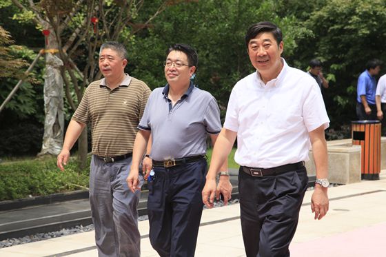 胡兆輝陪同  7月3日下午,甘肅省農(nóng)墾集團公司黨委書記、董事長謝天德等一行八人,在集團公司總經(jīng)理胡兆輝等陪同下到通宇房地產(chǎn)公司進行調(diào)研?! ≈x天德等一行首先來到通宇公司林景熙園售樓部,觀看了樓盤模