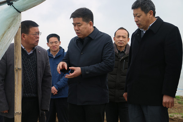 3月22日,集團公司黨委書記、董事長魏紅軍到?港農(nóng)場調(diào)研指導(dǎo)工作。調(diào)研期間,魏紅軍一行先后考察了有機農(nóng)莊、精品苗木基地、小麥生產(chǎn)現(xiàn)場、灌溉引水工程、大棚西瓜核心生產(chǎn)區(qū)、黃金瓜種植基