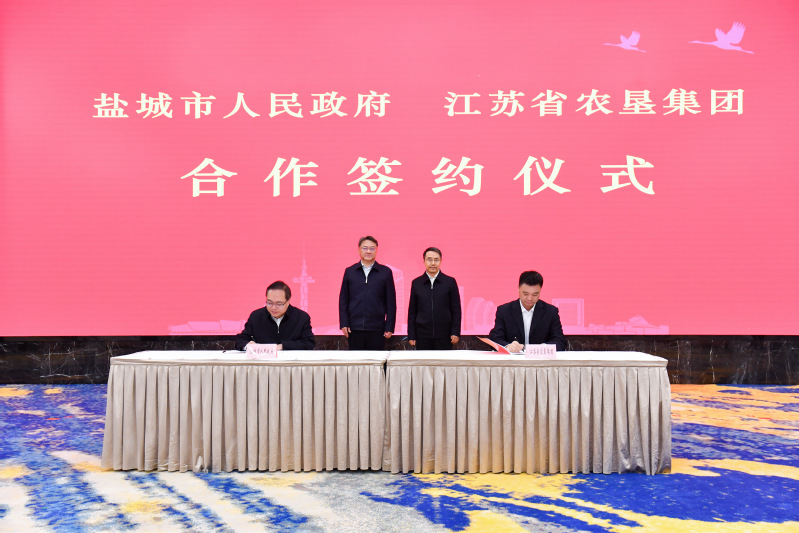 4月2日下午,集團公司與鹽城市簽訂合作框架協(xié)議。鹽城市委書記周斌,集團公司黨委書記、董事長吳本輝出席簽約儀式并致辭。鹽城市委副書記、市長張明康,集團公司黨委副書記、總經(jīng)理姜建友代表雙方簽約。鹽城市委常委、秘書長薛盛堂、市委常委、副市長王連春,集團公司領(lǐng)導劉耀武、王立新和總經(jīng)濟師朱亞東出席,鹽城市副市長王娟主持簽約儀式。周斌向江蘇農(nóng)墾長期以來對鹽城經(jīng)濟社會發(fā)展的關(guān)心支持表示感謝,并簡要介紹了鹽城的“三農(nóng)”工作情況。他說,作為省內(nèi)農(nóng)業(yè)大市、產(chǎn)糧大市,鹽城糧食總產(chǎn)常年保持在140億斤以上,是長三角中心區(qū)農(nóng)業(yè)總產(chǎn)值唯一超千億元的城市,為端牢“中國飯碗”展現(xiàn)出鹽城擔當。江蘇農(nóng)墾是國有農(nóng)業(yè)經(jīng)濟的骨干和代表,是推進農(nóng)業(yè)農(nóng)村現(xiàn)代化的重要力量。鹽城與江蘇農(nóng)墾歷史淵源深厚、產(chǎn)業(yè)高度契合、資源優(yōu)勢互補,雙方有著良好的合作基礎(chǔ),希望雙方以此次簽約為契機,按照省委部署要求,立足墾區(qū)和市域特點,進一步深化項目、機制等方面的創(chuàng)新合作,積極建設(shè)規(guī)模生產(chǎn)大基地,全面夯實糧食安全根基。積極互學互鑒,加強產(chǎn)學研合作,加快種業(yè)關(guān)鍵核心技術(shù)攻關(guān),發(fā)揮產(chǎn)業(yè)鏈協(xié)同作用,打造一批特色鮮明的農(nóng)業(yè)產(chǎn)業(yè)集群。大力培育農(nóng)業(yè)新質(zhì)生產(chǎn)力,提升農(nóng)