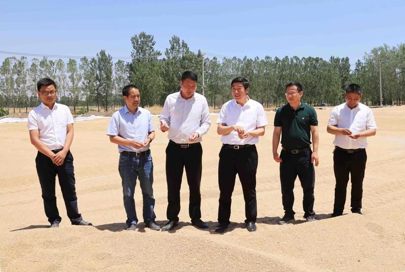6月7日上午,集團(tuán)公司黨委副書記、總經(jīng)理、蘇墾農(nóng)發(fā)股份公司董事長(zhǎng)胡兆輝到崗埠考察調(diào)研。胡兆輝先后考察了蘇墾農(nóng)發(fā)股份公司崗埠分公司王溝生產(chǎn)區(qū)玉米大豆帶狀復(fù)合種植播種現(xiàn)場(chǎng)、耕地現(xiàn)場(chǎng)和崗埠生產(chǎn)區(qū)曬場(chǎng)糧食安全情況,并與檢查玉米大豆帶狀復(fù)合種植質(zhì)量的田間工作人員親切交談,對(duì)崗埠全場(chǎng)“一盤棋”、全力戰(zhàn)“三夏”給予充分肯定。胡兆輝指出,要提高政治站位,堅(jiān)決服從國(guó)家戰(zhàn)略需要,高質(zhì)量完成省委省政府交予的重要任務(wù)。要增強(qiáng)全局意識(shí),堅(jiān)定信心,服從指揮,把思想認(rèn)識(shí)行動(dòng)統(tǒng)一到集團(tuán)公司決策部署上來,以“國(guó)之大者”的胸懷壓實(shí)責(zé)任擔(dān)當(dāng)。要堅(jiān)定不移推進(jìn)全面從嚴(yán)治黨,推動(dòng)黨建工作與產(chǎn)業(yè)融合發(fā)展,以高質(zhì)量黨建引領(lǐng)高質(zhì)量發(fā)展。胡兆輝強(qiáng)調(diào),要通過推進(jìn)玉米大豆帶狀復(fù)合種植推動(dòng)產(chǎn)業(yè)結(jié)構(gòu)優(yōu)化升級(jí),及時(shí)調(diào)整產(chǎn)業(yè)結(jié)構(gòu)和產(chǎn)品布局,加大機(jī)械投入,大力發(fā)展現(xiàn)代農(nóng)業(yè),力爭(zhēng)實(shí)現(xiàn)跨越式發(fā)展。要落實(shí)“藏糧于地、藏糧于技”以及藏糧于管戰(zhàn)略,嚴(yán)格執(zhí)行技術(shù)規(guī)程和試驗(yàn)示范工作方案,及時(shí)總結(jié)經(jīng)驗(yàn),確保玉米大豆帶狀復(fù)合種植任務(wù)按時(shí)完成,堅(jiān)決打贏玉米大豆帶狀復(fù)合種植播種這場(chǎng)硬仗。胡兆輝要求,要深刻理解做好“三夏”工作的重大意義,充分認(rèn)清“三夏”工作的復(fù)雜性、艱巨性