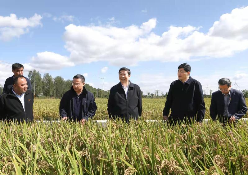 10月18日,集團公司黨委副書記、總經(jīng)理、蘇墾農(nóng)發(fā)股份公司董事長胡兆輝深入黃海檢查指導工作,蘇墾農(nóng)發(fā)公司總裁、黃海農(nóng)場公司領導班子成員陪同并匯報情況。胡兆輝先后查看不同受災程度的水稻田塊,深入收割現(xiàn)場和糧食場頭,詳細了解“三秋”工作整體開展情況。胡兆輝指出,受連續(xù)降雨大風影響,黃海面對“雨量最大、災情最重、范圍最廣”的嚴峻挑戰(zhàn),公司黨委一班人高度重視、積極應對、措施及時有力,團結帶領全場干部職工“抗災保糧奪豐收”,農(nóng)場實現(xiàn)和諧穩(wěn)定,在田作物受損程度降到最低,集團公司給予充分肯定。針對下一步工作,胡兆輝強調(diào):一是堅定信心,全力打贏“三秋”戰(zhàn)役。當前,公司上下要全力圍繞“三秋”、一切服務于“三秋”,統(tǒng)籌協(xié)調(diào)一切積極因素,把受災被動轉變?yōu)楦哔|(zhì)量完成“1+2”戰(zhàn)略的主動,著眼周年綜合效益,把握農(nóng)發(fā)全產(chǎn)業(yè)鏈大局,在集團公司“強核戰(zhàn)略”和中國現(xiàn)代農(nóng)業(yè)航母“江蘇號”的戰(zhàn)略打造中體現(xiàn)黃海擔當。二是抓實抓細,強化環(huán)節(jié)措施到位。要主動把黃海工作放在集團公司和農(nóng)發(fā)公司全局考慮,全力圍繞“三秋”指揮部各項部署,強化執(zhí)行、狠抓落實,做到措施環(huán)環(huán)相扣抓落實,形成“三秋”措施上下貫通執(zhí)行,一體協(xié)同推進,確保保糧保種