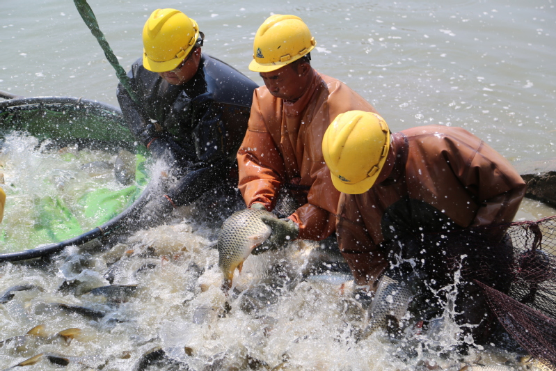 入夏以來,崗埠迎來水產(chǎn)品捕撈銷售的黃金季節(jié)。7月4日一大早,崗埠農(nóng)場公司北漁場的養(yǎng)殖塘口便響起了“起網(wǎng)”的號(hào)子聲,隨著工人們相互配合,一起發(fā)力將巨型漁網(wǎng)緩緩收攏,一條條活蹦亂跳的大魚出現(xiàn)在人們的視野中,平靜的水面上也頓時(shí)水花飛濺,大魚歡快地躍出水面,一片人歡魚躍的豐收景象?!?024年上半年,養(yǎng)殖中心緊跟市場行情,連續(xù)開展捕魚銷售作業(yè),爭取效益最大化?!痹诓稉片F(xiàn)場,中心負(fù)責(zé)人單懷亞一邊指揮分揀水產(chǎn)品,一邊介紹。養(yǎng)殖中心充分發(fā)揮“淮河牌”水產(chǎn)品品牌優(yōu)勢和無公害水產(chǎn)品養(yǎng)殖規(guī)模化、標(biāo)準(zhǔn)化、高效化的優(yōu)勢,促進(jìn)水產(chǎn)養(yǎng)殖健康發(fā)展。今年以來,水產(chǎn)公司加快調(diào)整養(yǎng)殖模式,優(yōu)化養(yǎng)殖結(jié)構(gòu),采取“輪捕輪放,按需銷售”管理模式,準(zhǔn)確把握市場行情,確保全年都有鮮魚上市?!懊磕赀@個(gè)時(shí)候是水產(chǎn)銷售旺季,近期北漁場和南漁場將先后進(jìn)行水產(chǎn)捕撈銷售。我們時(shí)刻關(guān)注市場動(dòng)向,爭取銷售效益最大化。”單懷亞表示,養(yǎng)殖中心積極對接市場,努力提高水產(chǎn)銷售效益。據(jù)悉,夏季捕撈的魚獲以鯉魚、花鰱、白鰱為主,最重的鰱魚有15斤以上。僅7月4日當(dāng)天,捕撈銷售水產(chǎn)品28000斤,銷售額14萬元。下一步,養(yǎng)殖中心將繼續(xù)利用好水資源優(yōu)勢,結(jié)合產(chǎn)業(yè)發(fā)
