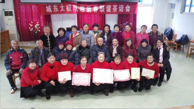 聯(lián)誼會(huì)上,太極隊(duì)隊(duì)長胡建軍發(fā)言說:“城東太極隊(duì)在過去的一年里,多次參加射陽縣舉辦的各項(xiàng)中老年人的活動(dòng),并屢次獲獎(jiǎng)。希望大家在新的一年里,繼續(xù)發(fā)揚(yáng)團(tuán)結(jié)友愛的精神,齊健身、同歡樂。”