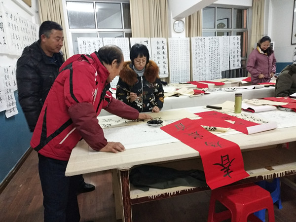 學(xué)員董兵說:“寫春聯(lián)不僅可以宣傳當(dāng)今新生活,還能表達自己的祝福,我在社區(qū)工作十多年了,沒想到還能夠換一種方式為居民服務(wù),真是有意義的事。”剛上兩節(jié)課的新學(xué)員張云說:“我是這里基礎(chǔ)最差的了,也跟著他們練練,說不準過年也能自己寫春聯(lián)呢!”