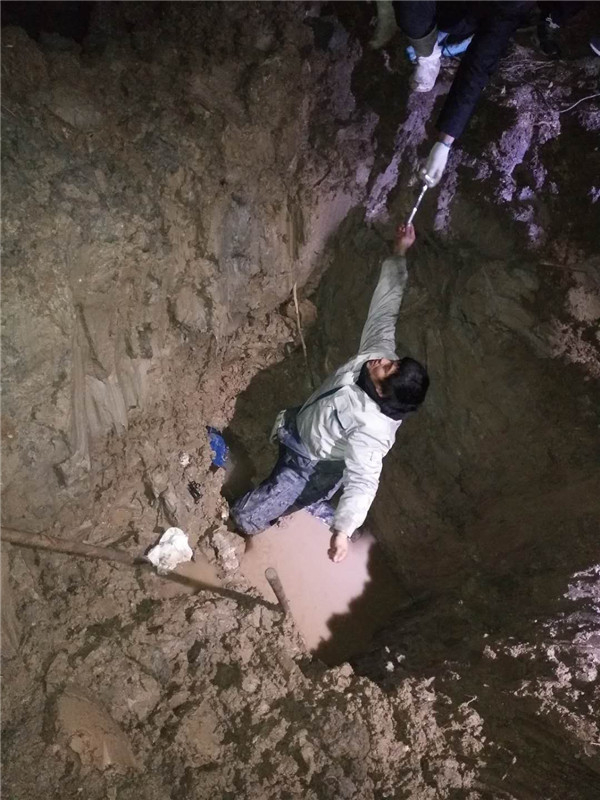 晚上6點(diǎn)30分,水電中心的搶修電話突然響起,位于農(nóng)場(chǎng)的于沈居民點(diǎn)一條供水管道被凍裂,大面積停水。水電中心主任江堯忠第一反應(yīng),“這是一條供水主管網(wǎng),如果搶修不及時(shí),必定會(huì)導(dǎo)致居民生活用水無(wú)法正常使用,必須盡快搶修好。”按照制定的應(yīng)急預(yù)案,帶著搶修工人冒著嚴(yán)寒立即趕往搶修現(xiàn)場(chǎng)。由于地面凍層比較厚,搶修人員先使用破碎錘將地面破開,把積水排出去,然后使用專用接頭把漏水點(diǎn)封住,在最短時(shí)間內(nèi)對(duì)漏水管道進(jìn)行搶修,站在冰冷的水中凍的直打哆嗦,大家都咬牙堅(jiān)持,經(jīng)過近3個(gè)小時(shí)的努力搶修,漏水管線得以修復(fù),恢復(fù)了正常供水。