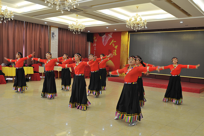 為展示淮海農(nóng)場(chǎng)軍墾文化的魅力,體現(xiàn)農(nóng)場(chǎng)退休職工的風(fēng)采,春節(jié)前夕,由10名退休女職工組成起來(lái)的一支淮海農(nóng)場(chǎng)老年舞蹈隊(duì),在淮海職教中心西大廳特地編排了一場(chǎng)哈噠舞,特地邀請(qǐng)農(nóng)場(chǎng)宣傳部門的技術(shù)人員,通過(guò)實(shí)時(shí)錄像并上傳網(wǎng)絡(luò),讓廣大愛(ài)好舞蹈的網(wǎng)民可以觀看到由農(nóng)場(chǎng)人自編自演的哈噠舞蹈。