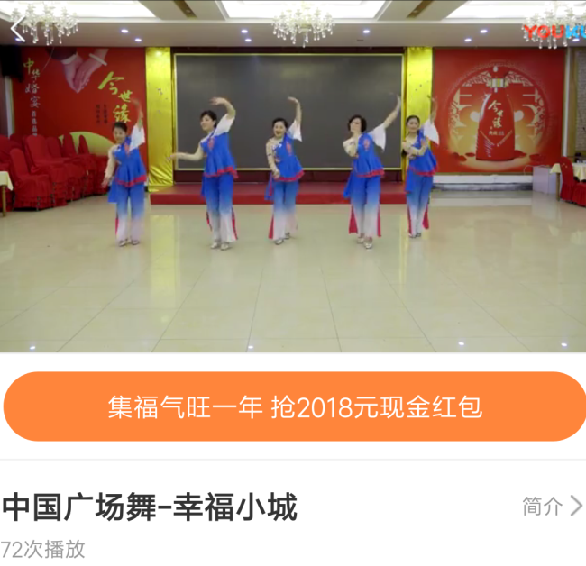 為展示淮海農(nóng)場軍墾文化的魅力,體現(xiàn)農(nóng)場退休職工的風(fēng)采,春節(jié)前夕,由10多名退休女職工組成起來的一支淮海農(nóng)場老年舞蹈隊,在淮海職教中心西大廳特地編排了“哈達(dá)”和“幸福小城”的舞蹈,特地邀請農(nóng)場宣傳部門的技術(shù)人員,通過實時錄像并上傳視頻網(wǎng)絡(luò),讓廣大愛好舞蹈的網(wǎng)民可以登錄優(yōu)酷網(wǎng),就可實時觀看到由農(nóng)場人自編自演的兩曲舞蹈節(jié)目。“哈達(dá)”舞蹈才上傳幾天,優(yōu)酷網(wǎng)絡(luò)視頻點擊量就近800次。