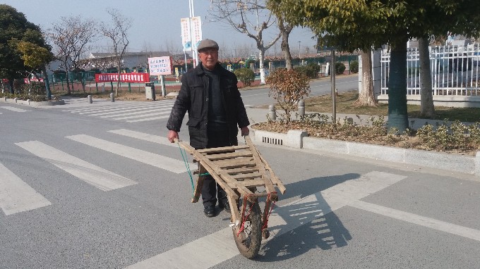 2月8日,習(xí)近平總書記參觀淮海戰(zhàn)役紀(jì)念館時(shí)提到的小推車出現(xiàn)在緊臨淮海的六垛集市上。小推車擁有者是淮海三分場(chǎng)社區(qū)的退休干部徐傳友。