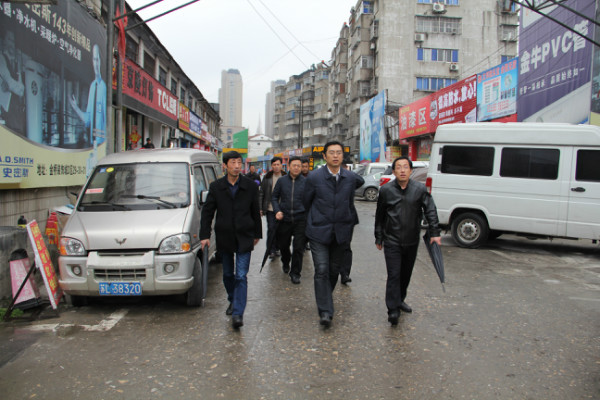 章朝陽現(xiàn)場考察了金橋裝飾材料市場、墻紙布藝大樓,通過實地考察,詳細(xì)了解市場內(nèi)商鋪出租情況和商戶經(jīng)營情況。