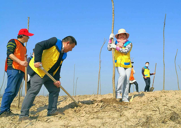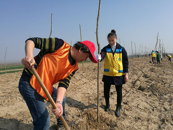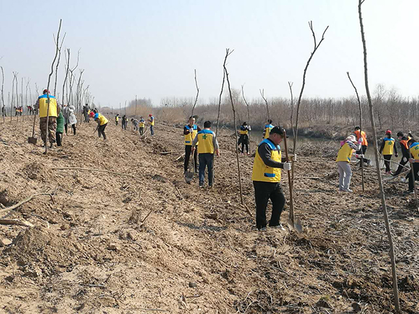活動中,大家一派熱火朝天的忙碌景象。搬運(yùn)樹苗,揮鍬鏟土,扶苗填坑,踏土夯苗,三五人一組默契配合,你運(yùn)苗,我扶苗,他填土,認(rèn)真地完成著每一道工序,栽下一株株樹苗?;顒映掷m(xù)一個小時,成功栽植3600余棵墨西哥落羽杉,取得了良好的成效。放眼望去,連片的樹苗錯落有致,在春風(fēng)的吹拂下煥發(fā)出盎然生機(jī)。此次活動的圓滿完成,為改善生態(tài)環(huán)境、助推綠色發(fā)展揮鋤添綠,吹響了全場大綠化攻堅戰(zhàn)號角。