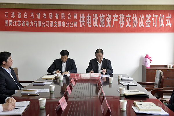 4月16日下午,江蘇省白馬湖農(nóng)場有限公司與國網(wǎng)江蘇省電力有限公司淮安供電分公司簽訂供電設(shè)施資產(chǎn)移交協(xié)議,開啟雙方攜手發(fā)展、合作共贏的新篇章。