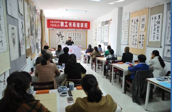 弘揚(yáng)書法藝術(shù),進(jìn)一步引導(dǎo)和提升公司書畫愛好者的創(chuàng)作水平,培養(yǎng)和發(fā)現(xiàn)更多、更優(yōu)的藝術(shù)人才。2018年4月17日,蘆花草堂書法院和淮海農(nóng)場(chǎng)有限公司,在職工文化活動(dòng)中心書畫室共同舉辦第四屆書畫愛好者培訓(xùn)班。中國(guó)書法家協(xié)會(huì)會(huì)員、江蘇省書法家協(xié)會(huì)會(huì)員、江蘇省青年書法家協(xié)會(huì)會(huì)員、鹽城市書法家協(xié)會(huì)理事,濱海縣書畫家協(xié)會(huì)副主席左克成老師應(yīng)邀前來授課,公司近20名學(xué)員參加了當(dāng)天的授課和書畫創(chuàng)作。