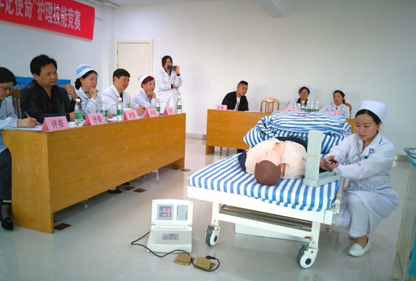 比賽中,護(hù)士們情緒飽滿,技能嫻熟,緊張有序的進(jìn)行模擬人操作,沉著冷靜應(yīng)對操作過程中遇到的各種狀況,體現(xiàn)了在急救過程中爭分奪秒的精神。評委們對照操作標(biāo)準(zhǔn)對參賽人員所展示的護(hù)理技能進(jìn)行了嚴(yán)格的評判。