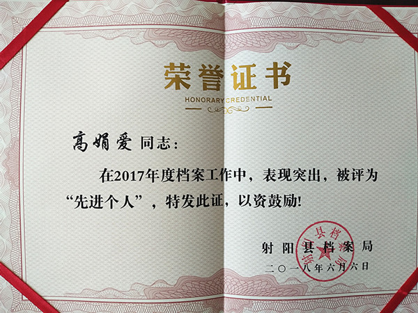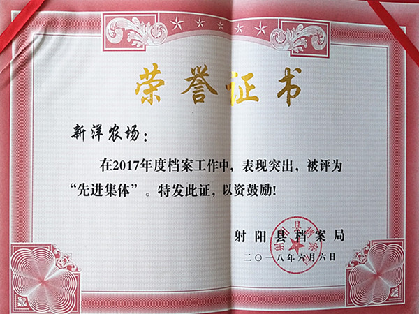 日前,射陽(yáng)縣檔案局傳來(lái)喜訊,新洋農(nóng)場(chǎng)有限公司榮獲射陽(yáng)縣2017年度檔案管理工作“先進(jìn)集體”稱號(hào),檔案管理員高娟愛(ài)榮獲2017年度檔案工作“先進(jìn)個(gè)人”。