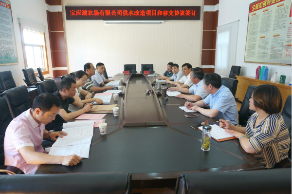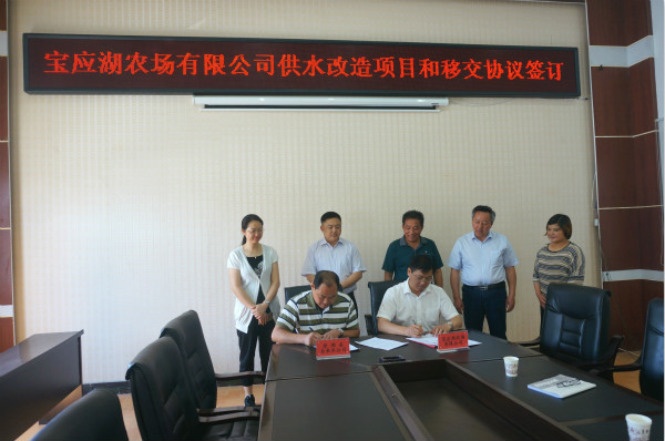連日來,寶應湖農(nóng)場有限公司積極與金湖縣自來水公司溝通對接,推進公司內(nèi)供水質(zhì)量提升改造項目穩(wěn)步實施、移交協(xié)議的順利簽訂。6月13日,雙方在寶應湖農(nóng)場有限公司會議室舉辦供水改造項目和移交協(xié)議簽訂儀式。農(nóng)場有限公司總經(jīng)理趙建坤,縣自來水公司經(jīng)理柏春陽及雙方相關(guān)部門負責人參加簽約儀式。