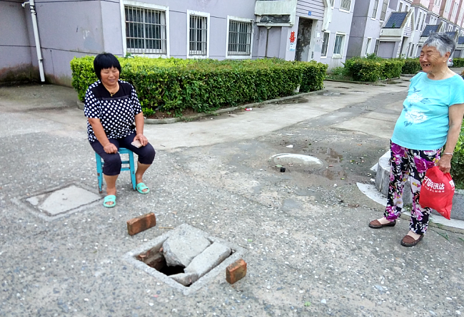 昨天,家住射陽(yáng)縣淮海農(nóng)場(chǎng)淮海路19號(hào)樓門(mén)面房中的農(nóng)場(chǎng)居民賈長(zhǎng)梅,傍晚發(fā)現(xiàn)樓道口間交通要道上的窨井蓋不知何時(shí)被過(guò)往的車(chē)輛壓壞了,知道這是安全隱患的的她,連忙拿來(lái)兩塊磚頭放在前后位置,又覺(jué)得不妥,就搬來(lái)了凳子,一邊坐在旁邊看護(hù),一邊叫人聯(lián)系社區(qū)管理人員前來(lái)修復(fù)。