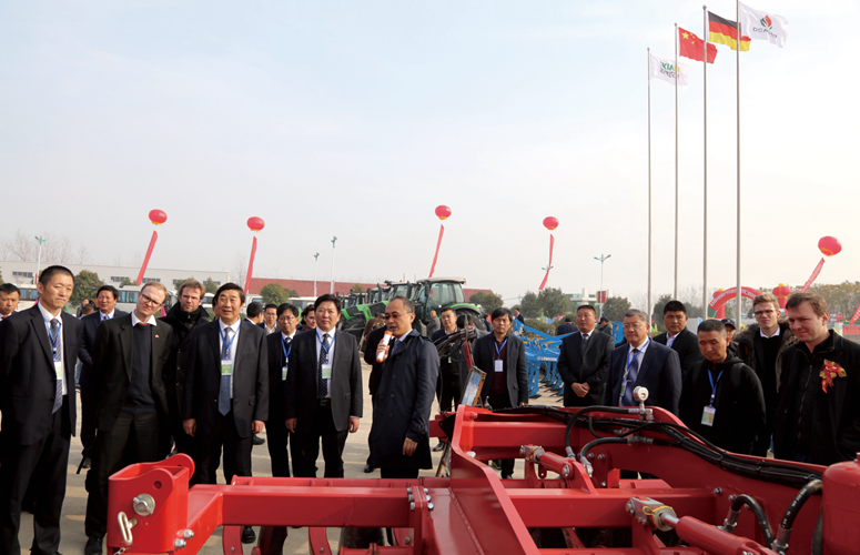 演出結(jié)束后,與會領(lǐng)導(dǎo)和嘉賓共同觀摩了中德示范園先進(jìn)農(nóng)機(jī)具展示和田間作物。