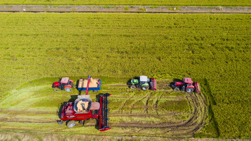 高空俯瞰,新洋的稻田格外俊俏,廣大干群正搶抓晴好天氣,組織人力、農(nóng)機,加緊收割水稻,一臺臺大型聯(lián)合收割機開足馬力穿梭田間,所到之處,水稻盡數(shù)倒下,切割、脫粒、粉碎秸稈一氣呵成,吐出的稻谷顆粒飽滿,空氣中彌漫著陣陣稻香,好一副醉美田園風光!