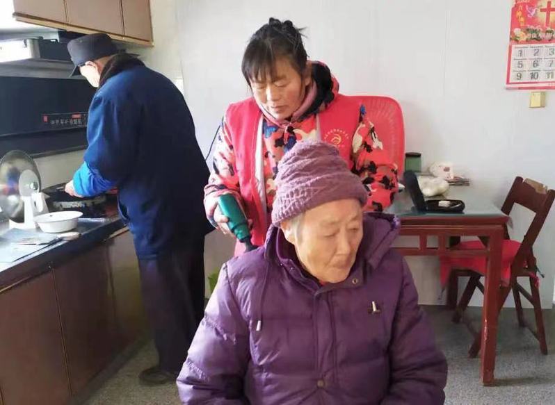 我們?cè)诮鹉棠碳铱吹?,身著志愿服裝的沈善兵、張榮芳兩人,他們?cè)诼槔貫槔先诉M(jìn)行健康體檢、理療等服務(wù),同時(shí)為老人家整理床鋪、打掃廚房、刷洗積塵等衛(wèi)生服務(wù)工作,讓金奶奶老兩口開(kāi)心不已之時(shí),又感嘆著兩位志愿者的傾情服務(wù),讓他們有了兒女在家的感覺(jué)。