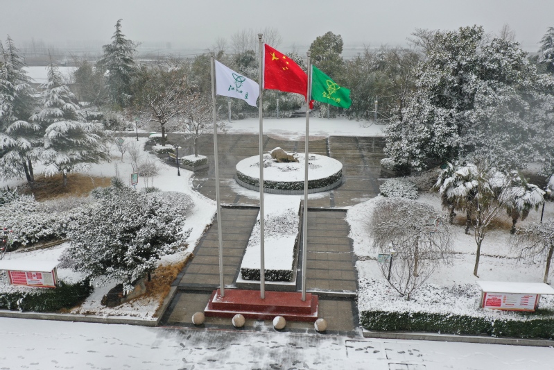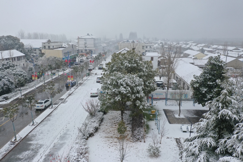 高大的銀杏樹、柿子樹,落光了葉子的枝杈上,一條條毛茸茸、亮晶晶的銀條兒好像蟄伏著的蠶蟲;修長(zhǎng)的香樟、低矮的柏樹,四季常青枝葉上,一朵朵蓬松松、沉甸甸的雪球,仿佛舉起的棉花糖。“呼……”一輛晨起的公交車閃著光駛過(guò),一面面紅旗也迎風(fēng)雀躍起來(lái),似乎在說(shuō)“又是一個(gè)豐收年”。