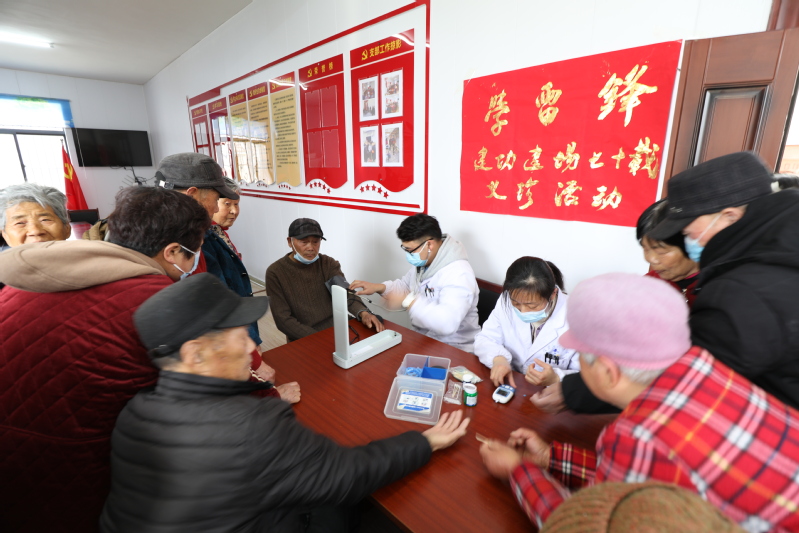 醫(yī)務(wù)人員在一旁為老年人測血壓、測血糖、查體看病、提供專業(yè)細(xì)致的醫(yī)療咨詢服務(wù),對他們的日常用藥進行了詳細(xì)講解,就慢病管理進行了悉心指導(dǎo),現(xiàn)場充滿溫暖祥和的氛圍。