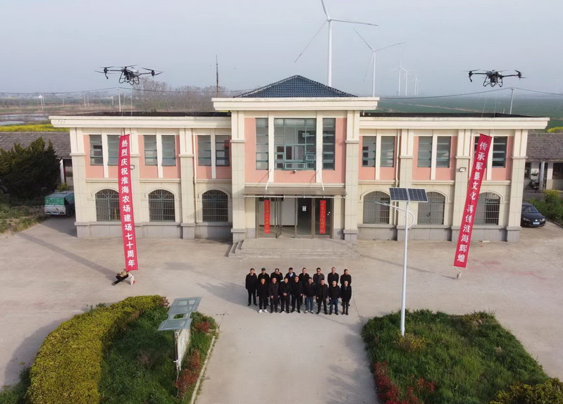 為體現(xiàn)本單位特色,七分場社區(qū)工會決定選擇日出時(shí)分和當(dāng)下最先進(jìn)的農(nóng)田植保機(jī)大疆T40表達(dá)對農(nóng)場的滿腔熱愛。為拍攝視頻,全體工作人員于10日凌晨五點(diǎn)有序排列在七分場海堤上等待日出,配合音樂,全心投入錄制視頻,用整齊劃一的口號表達(dá)了對農(nóng)場的祝福。“實(shí)力淮海、創(chuàng)新淮海、和諧淮海、美麗淮海”,一聲聲響亮的口號,是七分場全體工作人員的心聲,也代表著淮海人對農(nóng)場深深的愛意和祝福。在接下來的工作中,他們將堅(jiān)守崗位、嚴(yán)格履職,用實(shí)際行動(dòng)確保淮海發(fā)展勢頭持續(xù)穩(wěn)定,喜迎農(nóng)場成立70周年大慶。