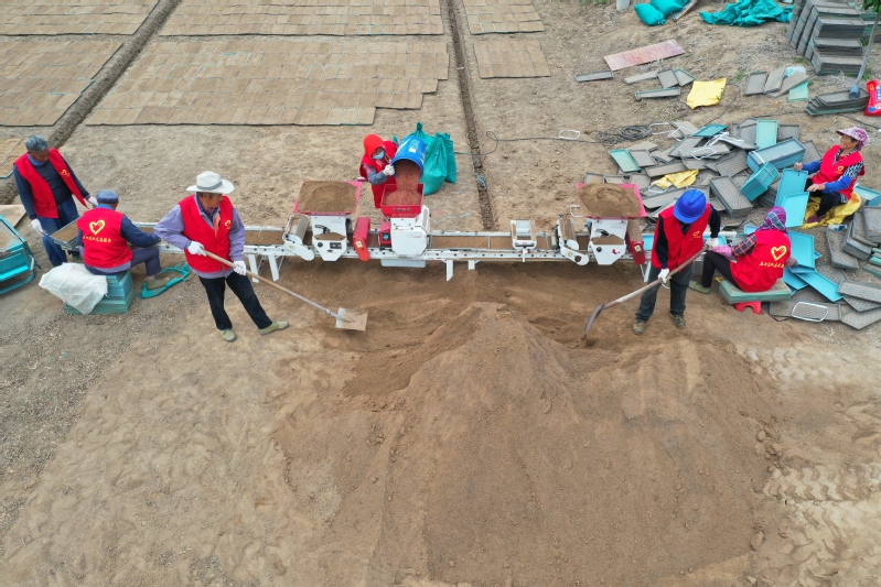 五七大隊(duì)今年機(jī)插秧1100畝,計(jì)劃用兩臺流水線4天完成育秧。兩臺流水線育秧需要24人配合,五七大隊(duì)現(xiàn)有在職職工10人,只有5人在家。大隊(duì)管理員、黨員聞?dòng)嵵鲃?dòng)加入育秧志愿服務(wù)。當(dāng)天完成近3萬盤育秧任務(wù),既加快了育秧進(jìn)度,又節(jié)省育秧費(fèi)用。