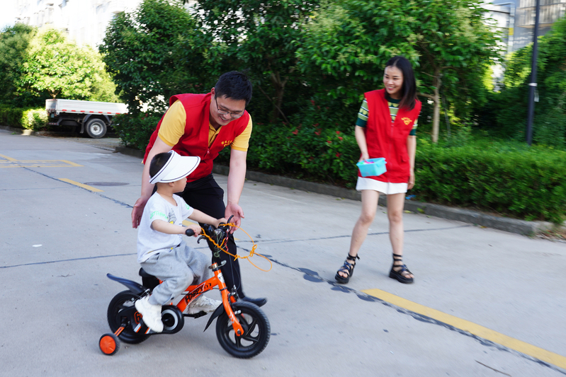6月10日下午,弶港農(nóng)場(chǎng)團(tuán)委“愛(ài)心爸爸”“愛(ài)心媽媽”帶著兒童繪本和玩具,走進(jìn)困境兒童小浩浩的家里?!皧W迪曼與怪獸作戰(zhàn)斗…… ”夢(mèng)想小屋的書(shū)桌前,浩浩依偎在“愛(ài)心媽媽”孫菁懷里,聽(tīng)著有聲有色的奧特曼的故事?!皠e怕,勇敢地往前騎,我在身后保護(hù)你”“我們一起來(lái)比賽,看誰(shuí)快”小區(qū)的空地上,在“愛(ài)心爸爸”陳海榮鼓勵(lì)下,浩浩騎著兒童單車,開(kāi)朗的笑聲在小區(qū)里飄蕩。一起玩拼圖、畫(huà)畫(huà)、做游戲,幾個(gè)小時(shí)下來(lái),不愛(ài)說(shuō)話的小浩浩從最初的羞澀生疏,到漸漸展露笑容,短暫的相聚中,與“愛(ài)心爸媽”建立了深厚的信任和感情。