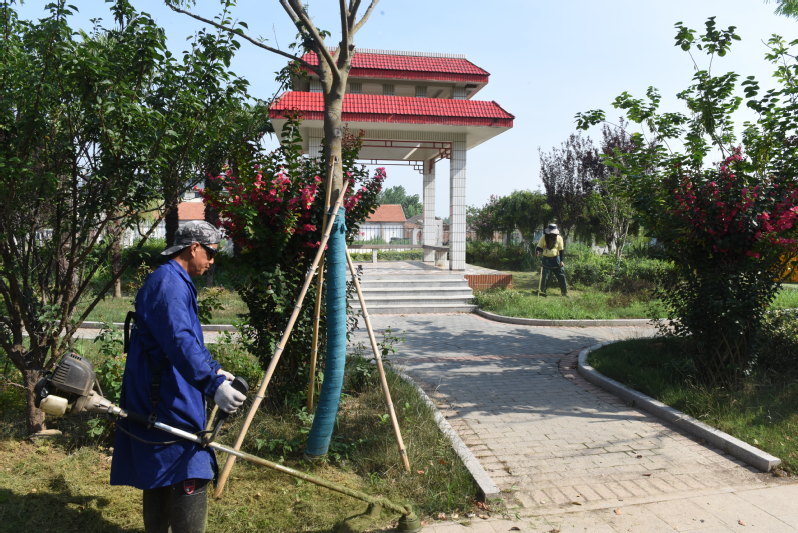 7月13日早上7時,在淮海路北側(cè)的路邊微型公園里,三名環(huán)衛(wèi)職工身負(fù)割草機,伴隨著隆隆的機器轟鳴聲,他們就已經(jīng)在忙著清理草坪了。據(jù)了解,最近他們的工作重點是修整草坪灌木綠地,維持好綠化帶的整潔美觀形象。“經(jīng)過我們的勞動,每當(dāng)看到公共綠地上的草坪被修剪得整整齊齊,就覺得一天的勞作沒有白辛苦。”環(huán)衛(wèi)工葉師傅在稍作休息之余時說。在與他們交談中了解到,他們除了修剪草坪外,還有許多諸如種花栽樹、剪枝除草、澆水抗旱、挖塘施肥、河道保潔、垃圾清運等工作,哪里需要哪里上,他們一直以服從指揮而為整個農(nóng)場的美麗環(huán)境進行精心地維護著。“每一項工作都要有人去打理,雖然環(huán)衛(wèi)工作很辛苦,但我既然選擇了這一行,就得把活干好,畢竟農(nóng)場美麗我光榮嘛!”葉師傅感言道。