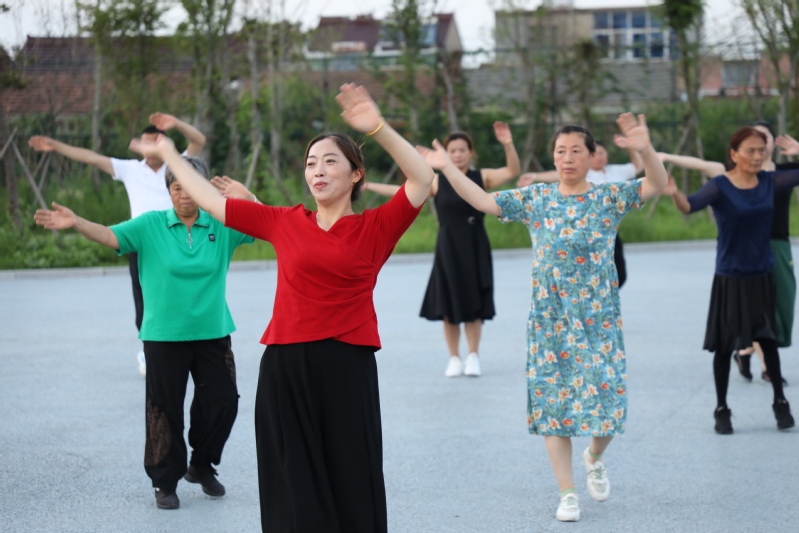 廣場舞臺上的愜意。每天傍晚6:30分,文化廣場都會傳出一陣陣歡快的音樂聲,伴隨著音樂的節(jié)奏,近百人舞動的身姿吸引著不少人跟著跳動比劃。自文化廣場建成后,農(nóng)場公司特地在百姓大舞臺廣場安裝了接電裝置,為職工居民跳廣場舞提供方便,舞臺南側(cè)的高桿燈光明亮,舞者們的臉上洋溢著幸福的微笑。廣場建成后,退休職工黃淑英主動當(dāng)起了廣場舞的老師,每天領(lǐng)著大家一起跳操跳舞健身,一支百余人的廣場舞隊(duì)每天活躍在文化廣場,帶動了更多的職工居民加入到跳舞健身的行列。黃淑英說:每晚跳舞健身后的大汗淋漓舒服極了,不僅使全身都得到了活動和放松,增強(qiáng)了體質(zhì),還增進(jìn)了大家之間的感情。