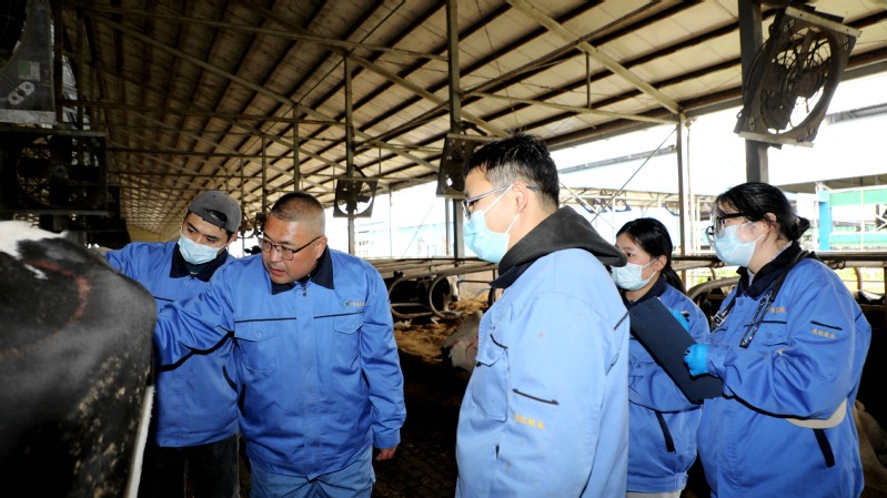 東旺奶牛公司生態(tài)養(yǎng)殖示范場存欄奶牛4800余頭,日常的奶牛管護、產(chǎn)后護理、轉(zhuǎn)群分群及病牛治療等工作任務(wù)十分繁重,獸醫(yī)組嚴格遵循“日巡查+周例會+月巡診”的工作機制,通過巡棚查看、巡診交流,全面了解掌握牛只的健康與成長狀況,做到有檢查、有治療、有回診,保障疫病防控和奶產(chǎn)品安全供給?!懊總€月,周主管都會定期帶我們進行巡診,現(xiàn)場診斷指導,我們的業(yè)務(wù)水平有了明顯提升,工作起來也更得心應(yīng)手了?!鲍F醫(yī)組工作人員楊華說。東旺奶牛公司始終堅持人才強企理念,通過師帶徒、老帶新和技術(shù)培訓、技術(shù)交流等形式,不斷提升獸醫(yī)人員專業(yè)技能水平,奶牛乳房炎、腸炎、蹄病等疾病發(fā)生率有效降低,在牧場提單產(chǎn)、降成本、增成效方面發(fā)揮出積極作用,助力東辛畜牧業(yè)高質(zhì)量發(fā)展。