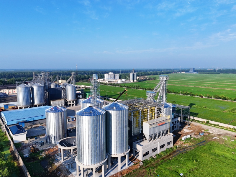 7月17日,在位于連云港市海州區(qū)的江蘇農(nóng)墾崗埠農(nóng)場(chǎng),施工單位搶抓晴好天氣,加緊推進(jìn)1200噸糧食智能烘干倉(cāng)建設(shè)。該烘干倉(cāng)采用5G+烘干機(jī)物聯(lián)網(wǎng)技術(shù),可通過(guò)手機(jī)、電腦等登錄物聯(lián)網(wǎng)App實(shí)現(xiàn)操作烘干線(xiàn)、糧庫(kù)設(shè)備。徐衛(wèi) 李想 攝 (視覺(jué)江蘇網(wǎng)供圖)