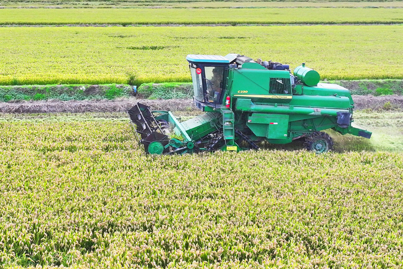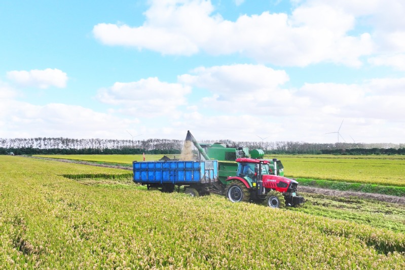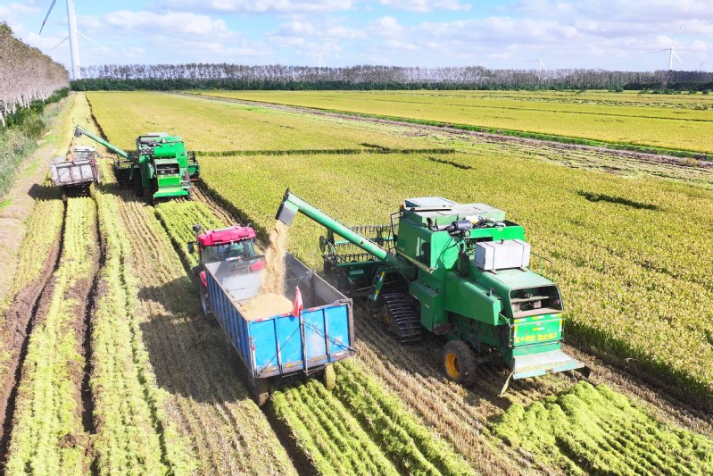 10月22日,在江蘇省鹽城市射陽縣,晴日之下的江蘇農(nóng)墾臨海農(nóng)場,萬畝稻田金黃如濤。多臺履帶式收割機(jī)在田間往來穿梭,將顆粒飽滿的稻谷源源不斷送入運糧車,一幅現(xiàn)代農(nóng)業(yè)搶收的繁忙圖景生動鋪展。受前期陰雨天氣影響,農(nóng)場以“搶”為令,啟用履帶式收割機(jī)破解濕陷難題,既保障耕地平整,又為后續(xù)播種奠定苗齊苗壯基礎(chǔ)。同時整合農(nóng)機(jī)與烘干資源,構(gòu)建“收割一運輸一烘干”一體化閉環(huán),全力推進(jìn)8萬余畝水稻搶收,為筑牢糧食安全屏障爭分奪秒。
